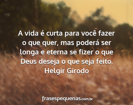 A vida é curta para você fazer o que quer, mas poderá ser longa e eterna se fizer o que Deus deseja o que seja feito.Helgir Girodo