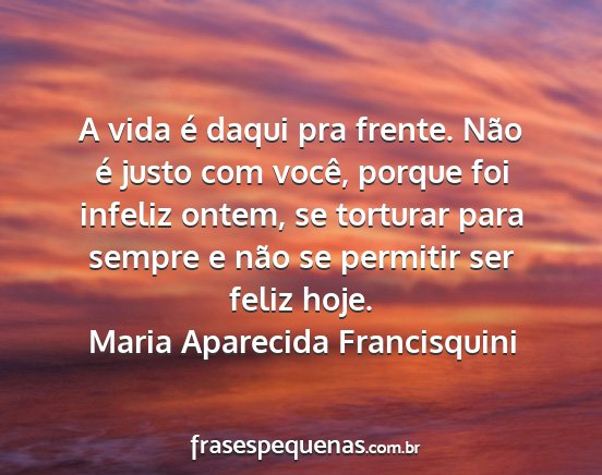 A vida é daqui pra frente. Não é justo com você, porque foi infeliz ontem, se torturar para sempre e não se permitir ser feliz hoje.Maria Aparecida Francisquini