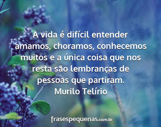 A vida é difícil entender amamos, choramos, conhecemos muitos e a única coisa que nos resta são lembranças de pessoas que partiram.Murilo Telírio