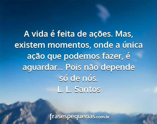 A vida é feita de ações. Mas, existem momentos, onde a única ação que podemos fazer, é aguardar... Pois não depende só de nós.L. L. Santos