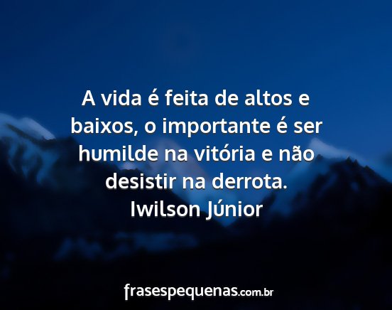A vida é feita de altos e baixos, o importante é ser humilde na vitória e não desistir na derrota.Iwilson Júnior
