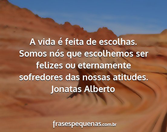 A vida é feita de escolhas. Somos nós que escolhemos ser felizes ou eternamente sofredores das nossas atitudes.Jonatas Alberto