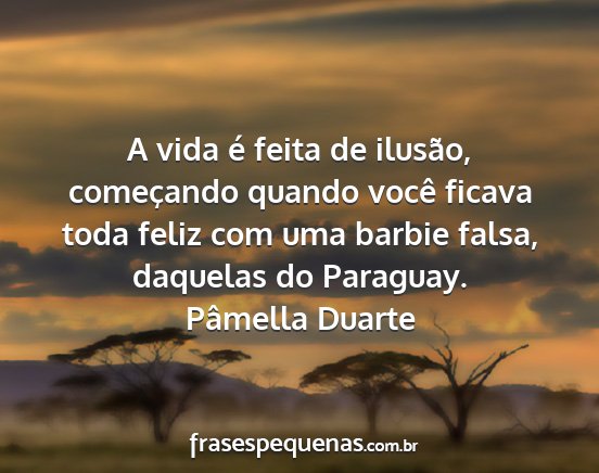 A vida é feita de ilusão, começando quando você ficava toda feliz com uma barbie falsa, daquelas do Paraguay.Pâmella Duarte