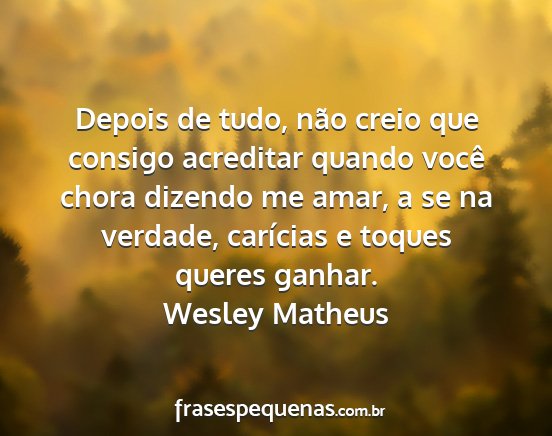 Depois de tudo, não creio que consigo acreditar quando você chora dizendo me amar, a se na verdade, carícias e toques queres ganhar.Wesley Matheus