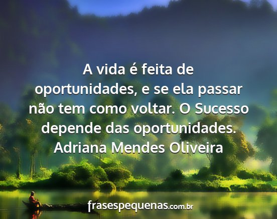 A vida é feita de oportunidades, e se ela passar não tem como voltar. O Sucesso depende das oportunidades.Adriana Mendes Oliveira