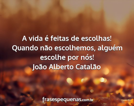 A vida é feitas de escolhas! Quando não escolhemos, alguém escolhe por nós!