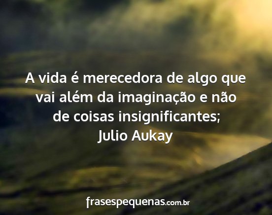 A vida é merecedora de algo que vai além da imaginação e não de coisas insignificantes;