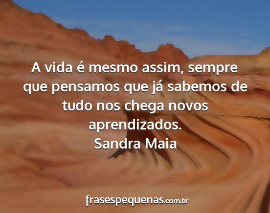 A vida é mesmo assim, sempre que pensamos que já sabemos de tudo nos chega novos aprendizados.Sandra Maia