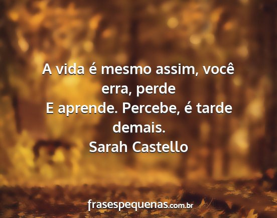 E aprende. Percebe, é tarde demais.
