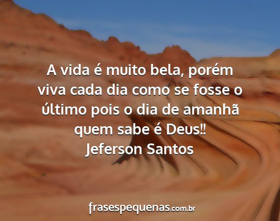 A vida é muito bela, porém viva cada dia como se fosse o último pois o dia de amanhã quem sabe é Deus!!Jeferson Santos