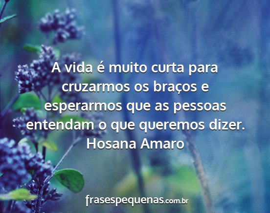 A vida é muito curta para cruzarmos os braços e esperarmos que as pessoas entendam o que queremos dizer.Hosana Amaro