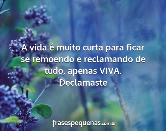 A vida é muito curta para ficar se remoendo e reclamando de tudo, apenas VIVA.