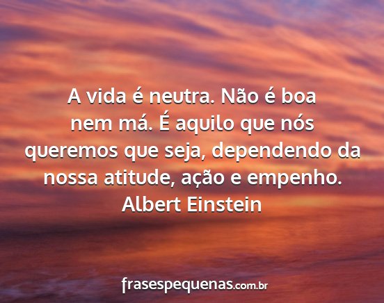 A vida é neutra. Não é boa nem má. É aquilo que nós queremos que seja, dependendo da nossa atitude, ação e empenho.Albert Einstein