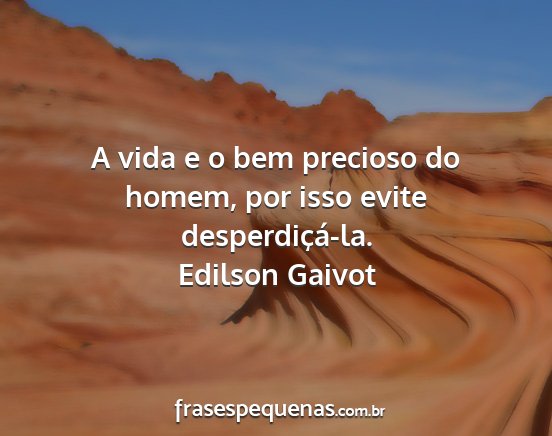 A vida e o bem precioso do homem, por isso evite desperdiçá-la.