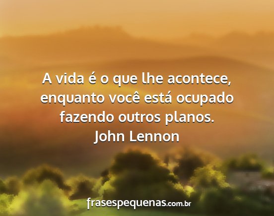 A vida é o que lhe acontece, enquanto você está ocupado fazendo outros planos.