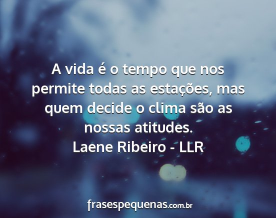 A vida é o tempo que nos permite todas as estações, mas quem decide o clima são as nossas atitudes.Laene Ribeiro - LLR