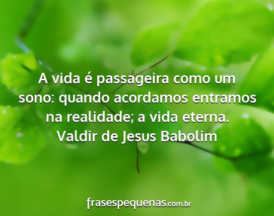 A vida é passageira como um sono: quando acordamos entramos na realidade; a vida eterna.Valdir de Jesus Babolim