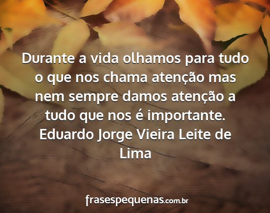 Durante a vida olhamos para tudo o que nos chama atenção mas nem sempre damos atenção a tudo que nos é importante.Eduardo Jorge Vieira Leite de Lima