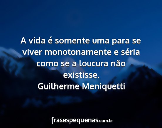 A vida é somente uma para se viver monotonamente e séria como se a loucura não existisse.Guilherme Meniquetti