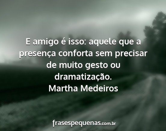 E amigo é isso: aquele que a presença conforta sem precisar de muito gesto ou dramatização.Martha Medeiros