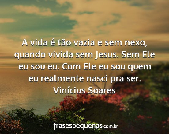 A vida é tão vazia e sem nexo, quando vivida sem Jesus. Sem Ele eu sou eu. Com Ele eu sou quem eu realmente nasci pra ser.Vinícius Soares