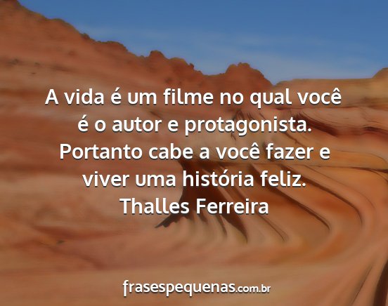A vida é um filme no qual você é o autor e protagonista. Portanto cabe a você fazer e viver uma história feliz.Thalles Ferreira