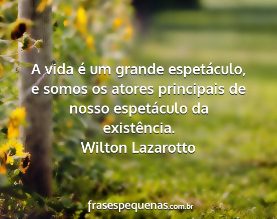 A vida é um grande espetáculo, e somos os atores principais de nosso espetáculo da existência.Wilton Lazarotto