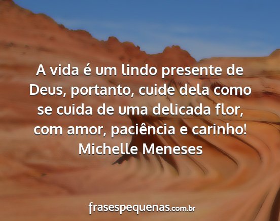 A vida é um lindo presente de Deus, portanto, cuide dela como se cuida de uma delicada flor, com amor, paciência e carinho!Michelle Meneses