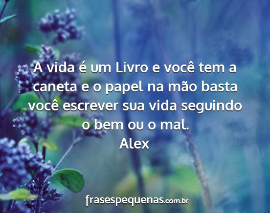 A vida é um Livro e você tem a caneta e o papel na mão basta você escrever sua vida seguindo o bem ou o mal.Alex