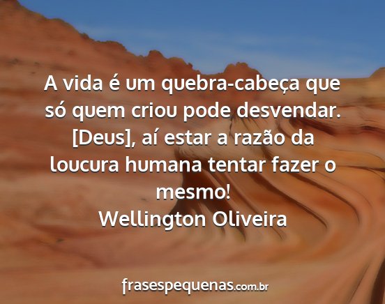 A vida é um quebra-cabeça que só quem criou pode desvendar. [Deus], aí estar a razão da loucura humana tentar fazer o mesmo!Wellington Oliveira