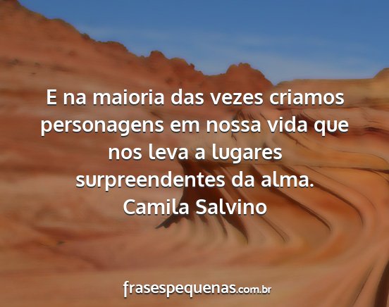 E na maioria das vezes criamos personagens em nossa vida que nos leva a lugares surpreendentes da alma.Camila Salvino