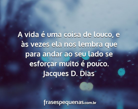 A vida é uma coisa de louco, e às vezes ela nos lembra que para andar ao seu lado se esforçar muito é pouco.Jacques D. Dias