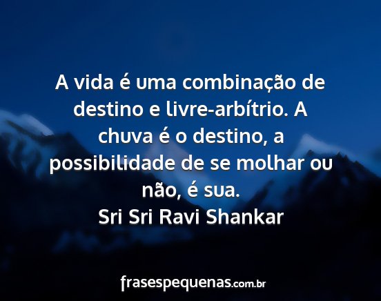 A vida é uma combinação de destino e livre-arbítrio. A chuva é o destino, a possibilidade de se molhar ou não, é sua.Sri Sri Ravi Shankar
