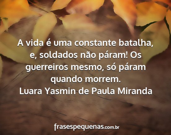 A vida é uma constante batalha, e, soldados não páram! Os guerreiros mesmo, só páram quando morrem.Luara Yasmin de Paula Miranda