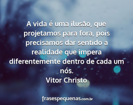 A vida é uma ilusão, que projetamos para fora, pois precisamos dar sentido a realidade que impera diferentemente dentro de cada um nós.Vitor Christo