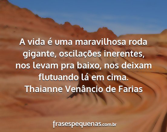 A vida é uma maravilhosa roda gigante, oscilações inerentes, nos levam pra baixo, nos deixam flutuando lá em cima.Thaianne Venâncio de Farias