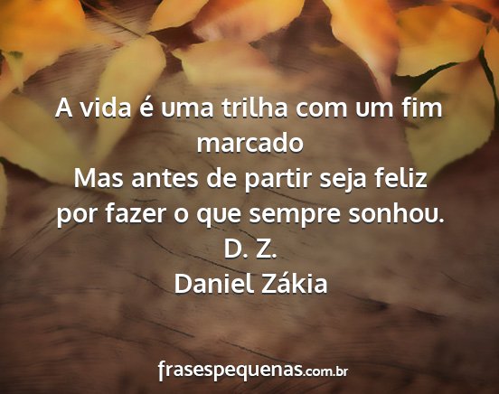 Mas antes de partir seja feliz por fazer o que sempre sonhou. D. Z.Daniel Zákia