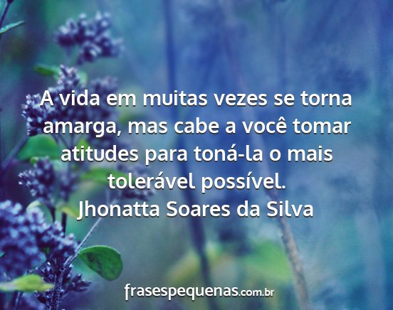 A vida em muitas vezes se torna amarga, mas cabe a você tomar atitudes para toná-la o mais tolerável possível.Jhonatta Soares da Silva
