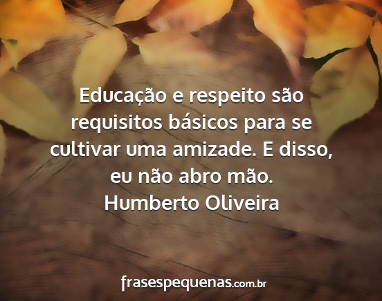 Educação e respeito são requisitos básicos para se cultivar uma amizade. E disso, eu não abro mão.Humberto Oliveira