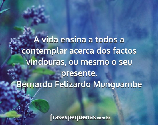 A vida ensina a todos a contemplar acerca dos factos vindouras, ou mesmo o seu presente.Bernardo Felizardo Munguambe