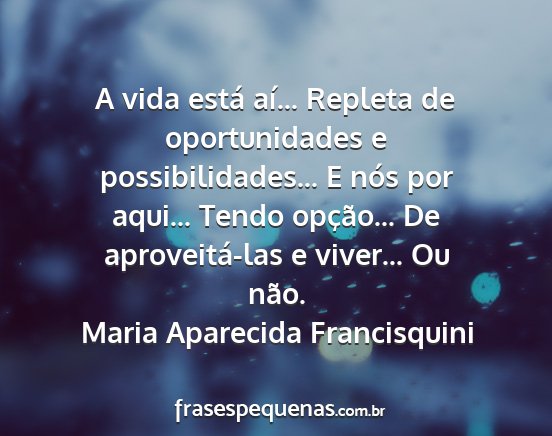 A vida está aí... Repleta de oportunidades e possibilidades... E nós por aqui... Tendo opção... De aproveitá-las e viver... Ou não.Maria Aparecida Francisquini