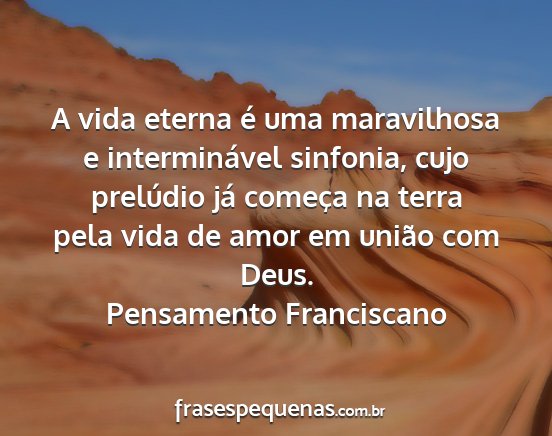 A vida eterna é uma maravilhosa e interminável sinfonia, cujo prelúdio já começa na terra pela vida de amor em união com Deus.Pensamento Franciscano