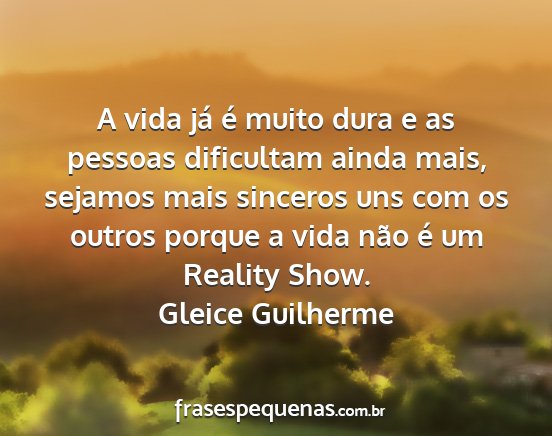 A vida já é muito dura e as pessoas dificultam ainda mais, sejamos mais sinceros uns com os outros porque a vida não é um Reality Show.Gleice Guilherme