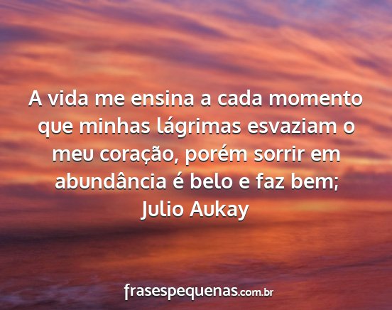 A vida me ensina a cada momento que minhas lágrimas esvaziam o meu coração, porém sorrir em abundância é belo e faz bem;Julio Aukay
