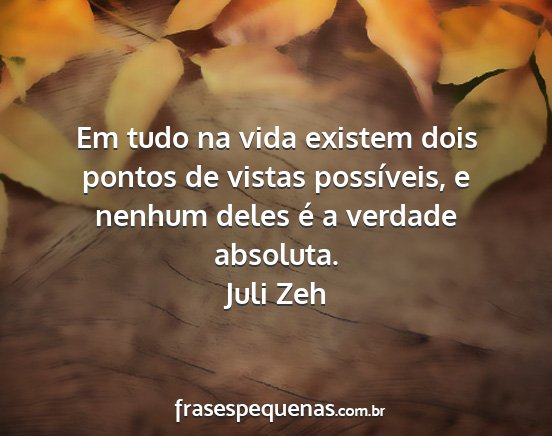 Em tudo na vida existem dois pontos de vistas possíveis, e nenhum deles é a verdade absoluta.Juli Zeh