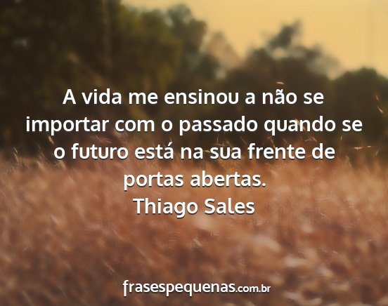 A vida me ensinou a não se importar com o passado quando se o futuro está na sua frente de portas abertas.Thiago Sales