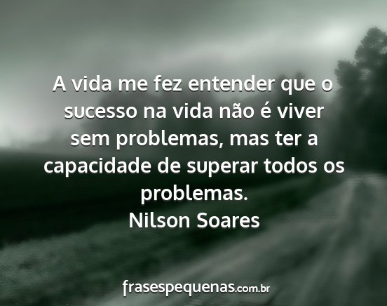 A vida me fez entender que o sucesso na vida não é viver sem problemas, mas ter a capacidade de superar todos os problemas.Nilson Soares