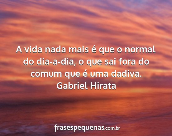 A vida nada mais é que o normal do dia-a-dia, o que sai fora do comum que é uma dadiva.Gabriel Hirata