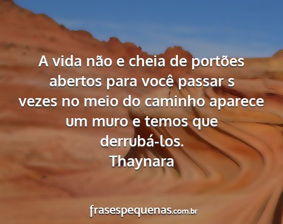 A vida não e cheia de portões abertos para você passar s vezes no meio do caminho aparece um muro e temos que derrubá-los.Thaynara