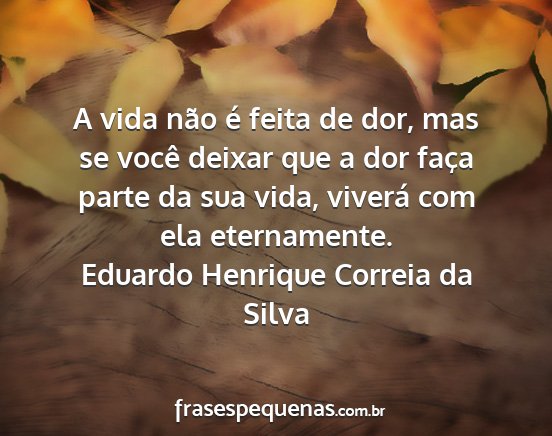 A vida não é feita de dor, mas se você deixar que a dor faça parte da sua vida, viverá com ela eternamente.Eduardo Henrique Correia da Silva